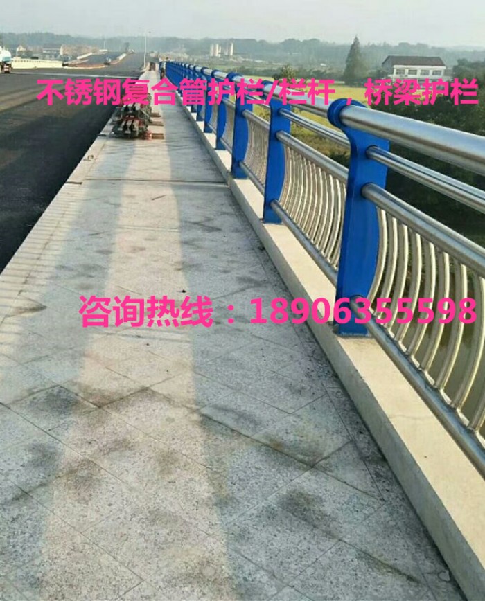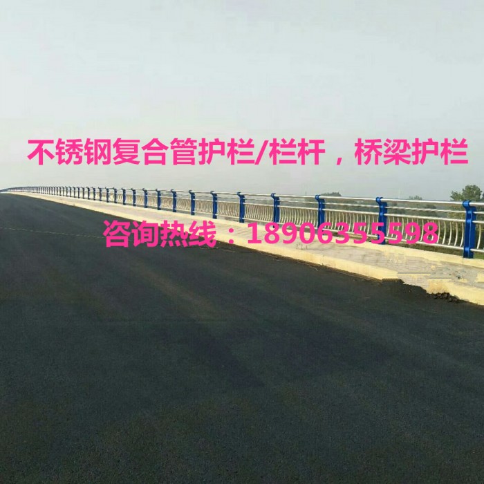 不銹鋼復合管欄桿,它不僅具有不銹鋼管的豪華美觀和現代氣息,又具有普通碳鋼管的堅韌性。是價昂不銹鋼管的替代品,它與鍍鋅噴塑鋼板立柱配合,做成城市、道橋等的安全欄桿。不僅牢固、大方,且可造型各異,是城市景觀護欄的首選。